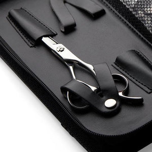 Der versetzte Offset Griff der Schere bringt den Daumen in eine natürliche Position und der Fingerhaken ermöglicht dir ein stabiles Arbeiten und gibt dem Führungsfinger mehr Stabilität und Kontrolle. Das Spannsystem macht die Bedienung der Schere besonders fließend.